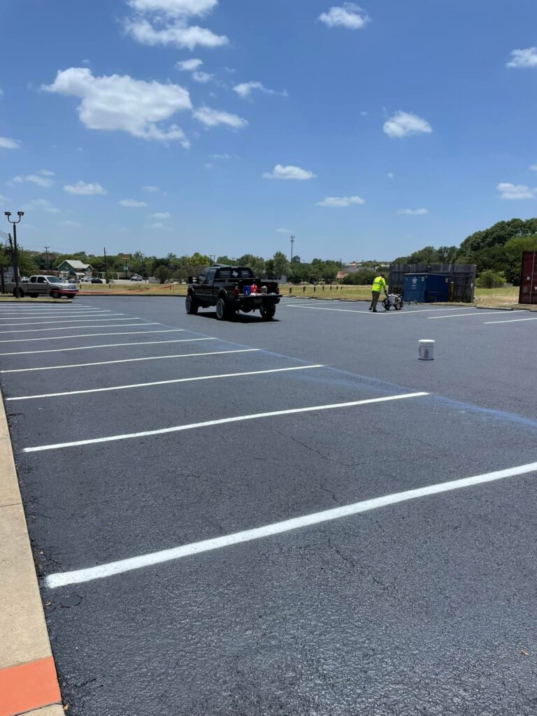 Clear striping keeps your parking lot safe, organized, and compliant. We provide expert line striping and pavement marking services to ensure every space, fire lane, handicap zone, and directional arrow is bright, accurate, and ADA-compliant. Using durable, long-lasting paint, we create markings that withstand heavy traffic and Texas heat—keeping your lot both functional and inviting.